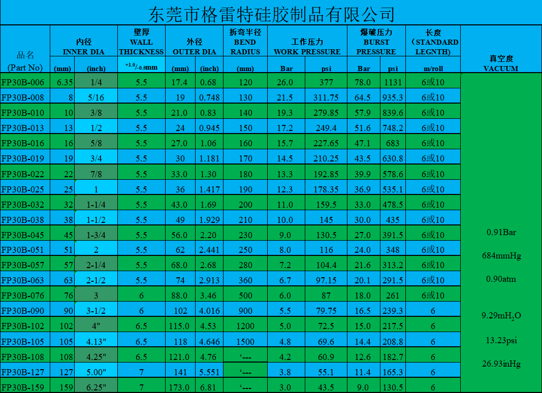 ——产品经过高温180ºC*4小时高温硫化后,不分产生任何分解物,承正负压能力强,具体参考数据表。